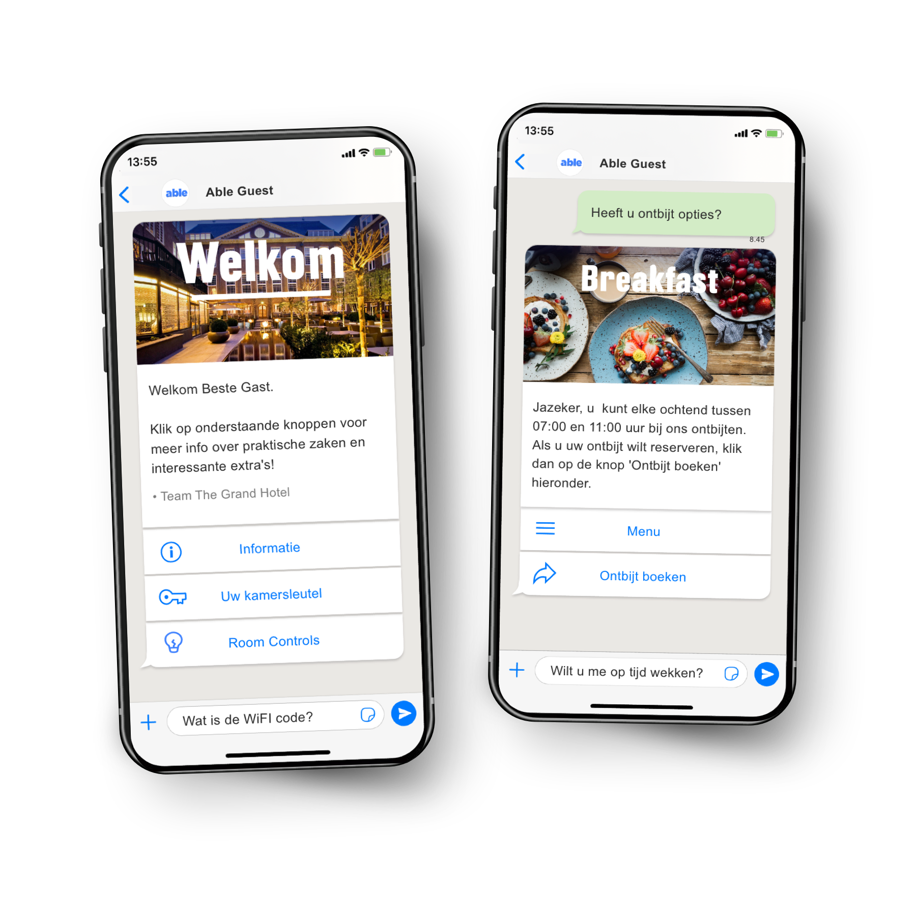 Maak het uw gasten eenvoudig. Of het nu gaat om roomservice, spa-behandelingen, restaurantreserveringen of excursies. Able integreert naadloos met uw inventaris- en reserveringssystemen. Gasten kunnen direct betalen via diverse betaalmethoden, waaronder het op de kamer zetten van kosten.