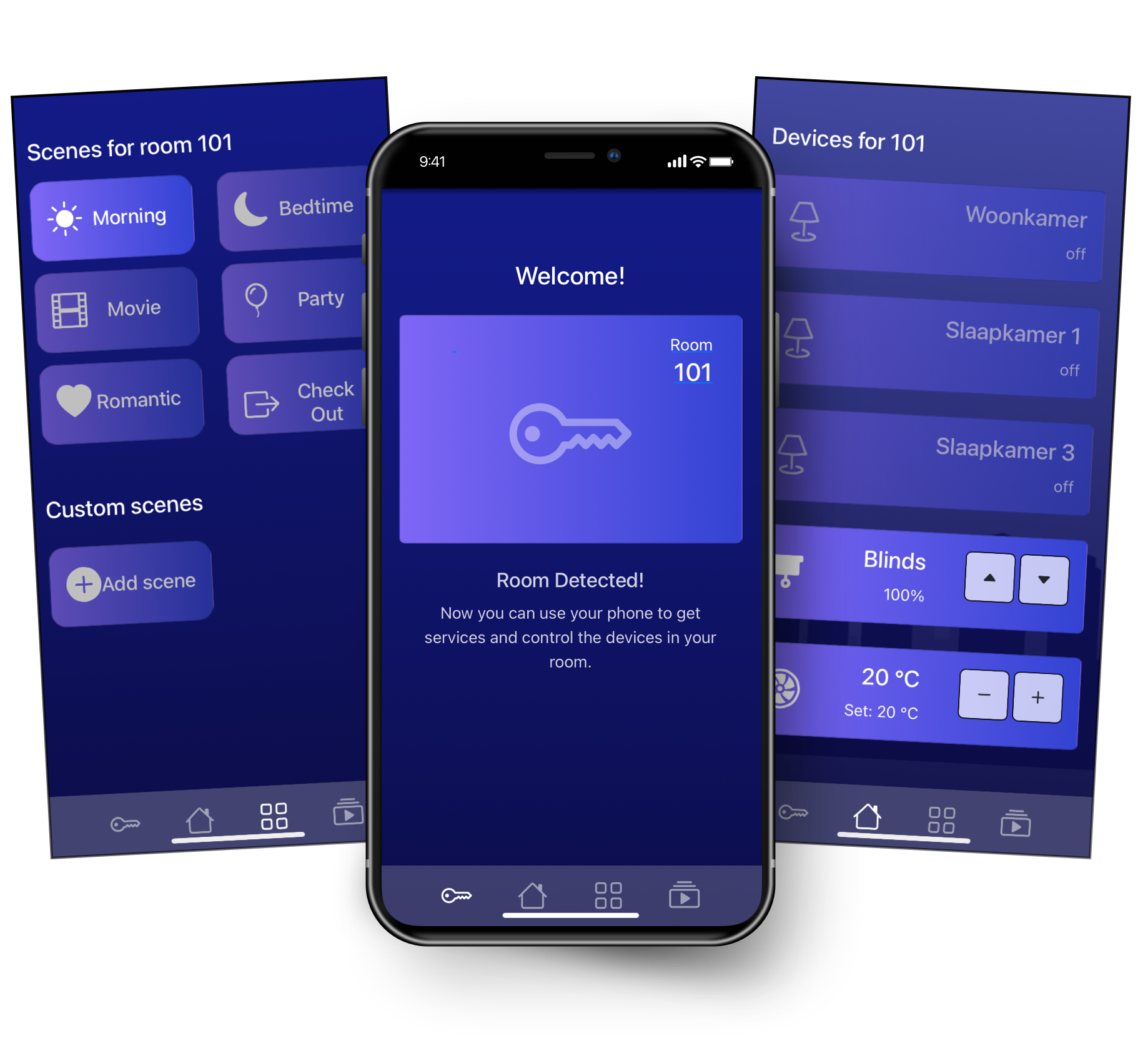 Onze oplossing is ook eenvoudig te gebruiken in uw bestaande omgeving. Zo kunt u uw gasten de mogelijkheid geven om hun kamerinstellingen vooraf of tijdens hun verblijf aan te passen via hun eigen apparaat. Dit verhoogt niet alleen de tevredenheid en loyaliteit van uw gasten, maar ook uw efficiëntie en duurzaamheid.