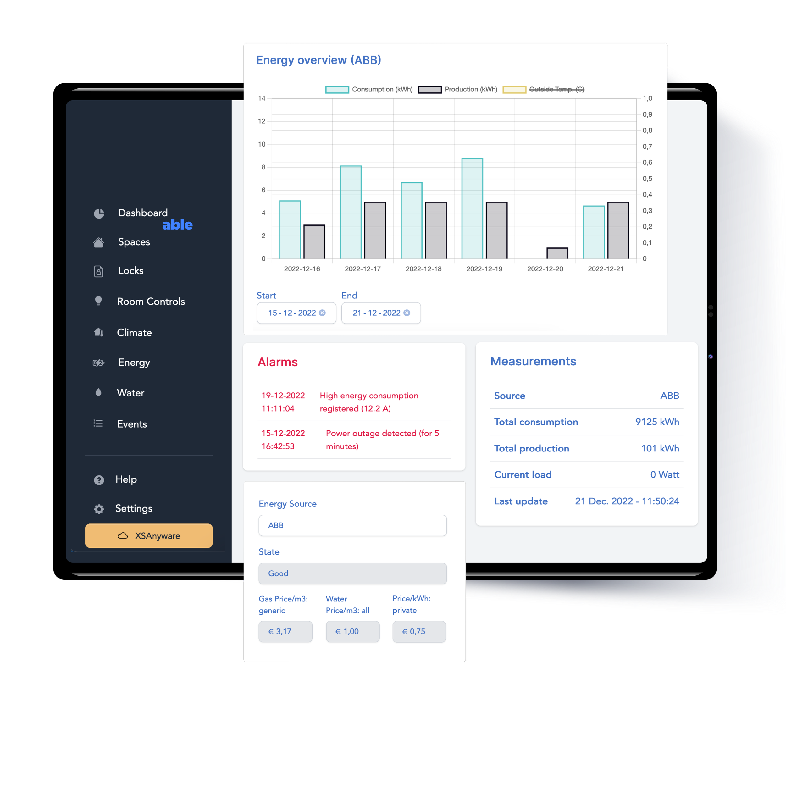 Able bevordert duurzaam gebruik van middelen en verkleint de ecologische voetafdruk door gegevensanalyse en real-time monitoring. Het identificeert inefficiënties, optimaliseert energie- en resourcegebruik, en zorgt voor slimme monitoring en controle van energie-intensieve systemen, waardoor verspilling wordt verminderd.